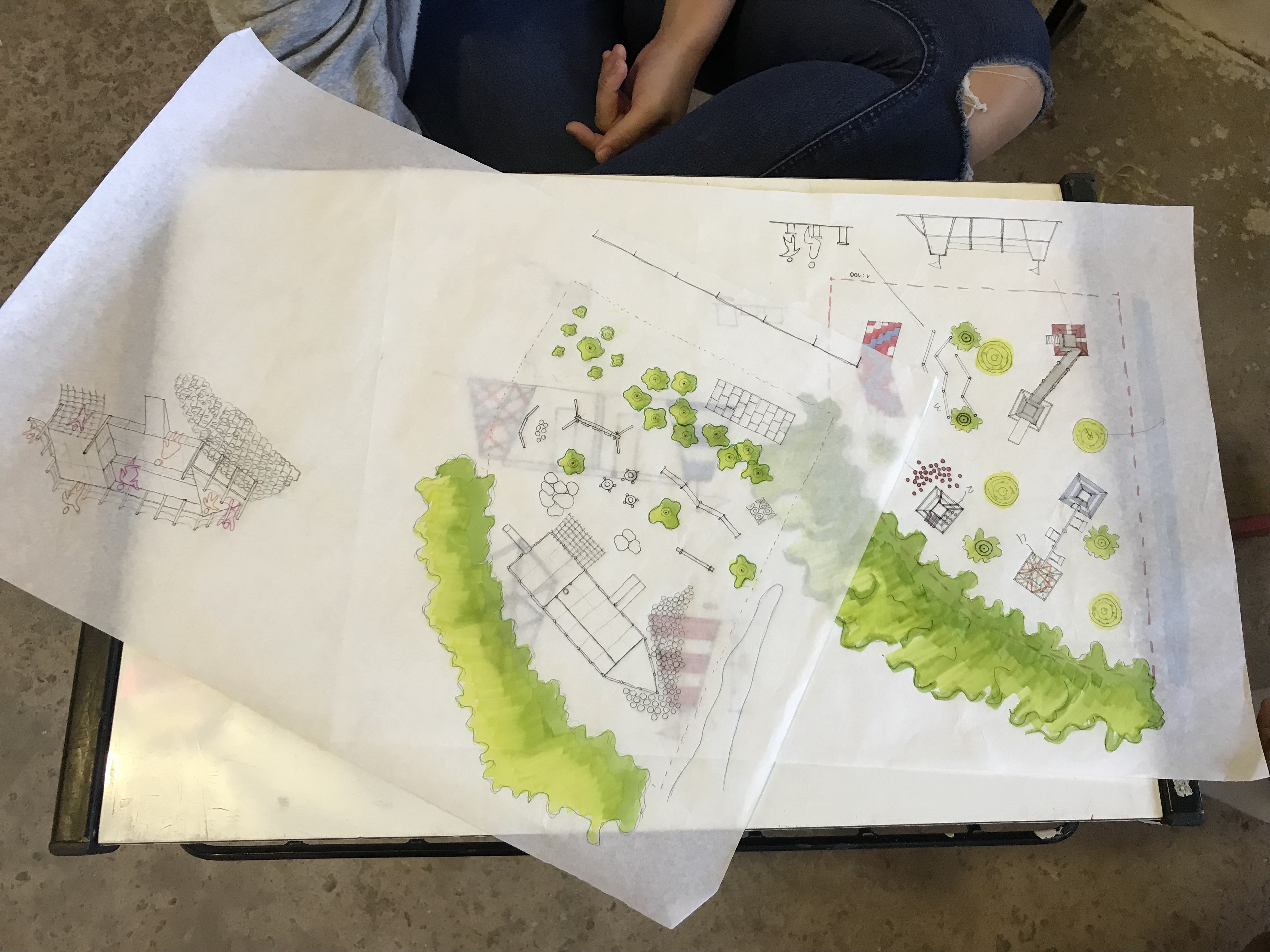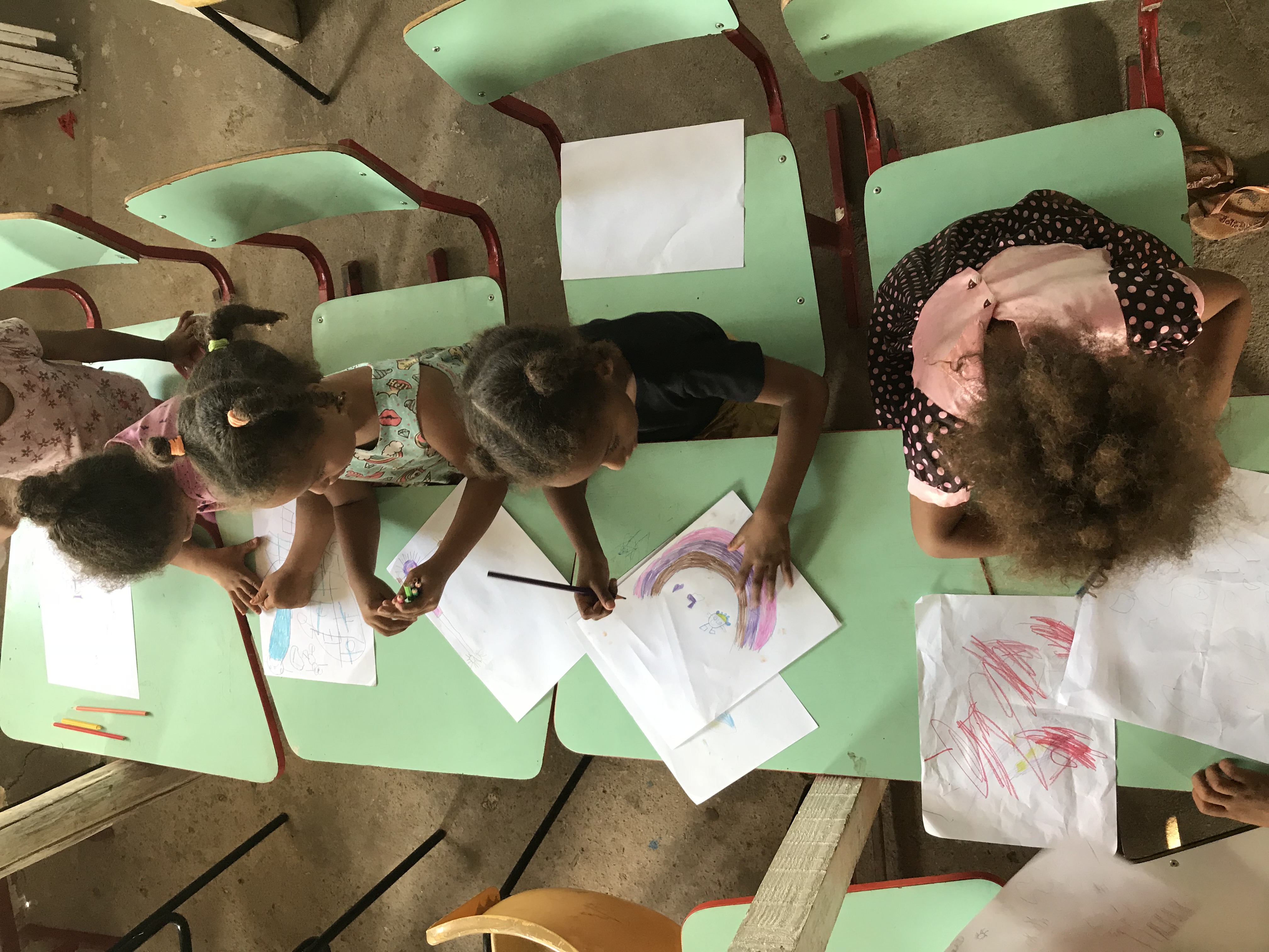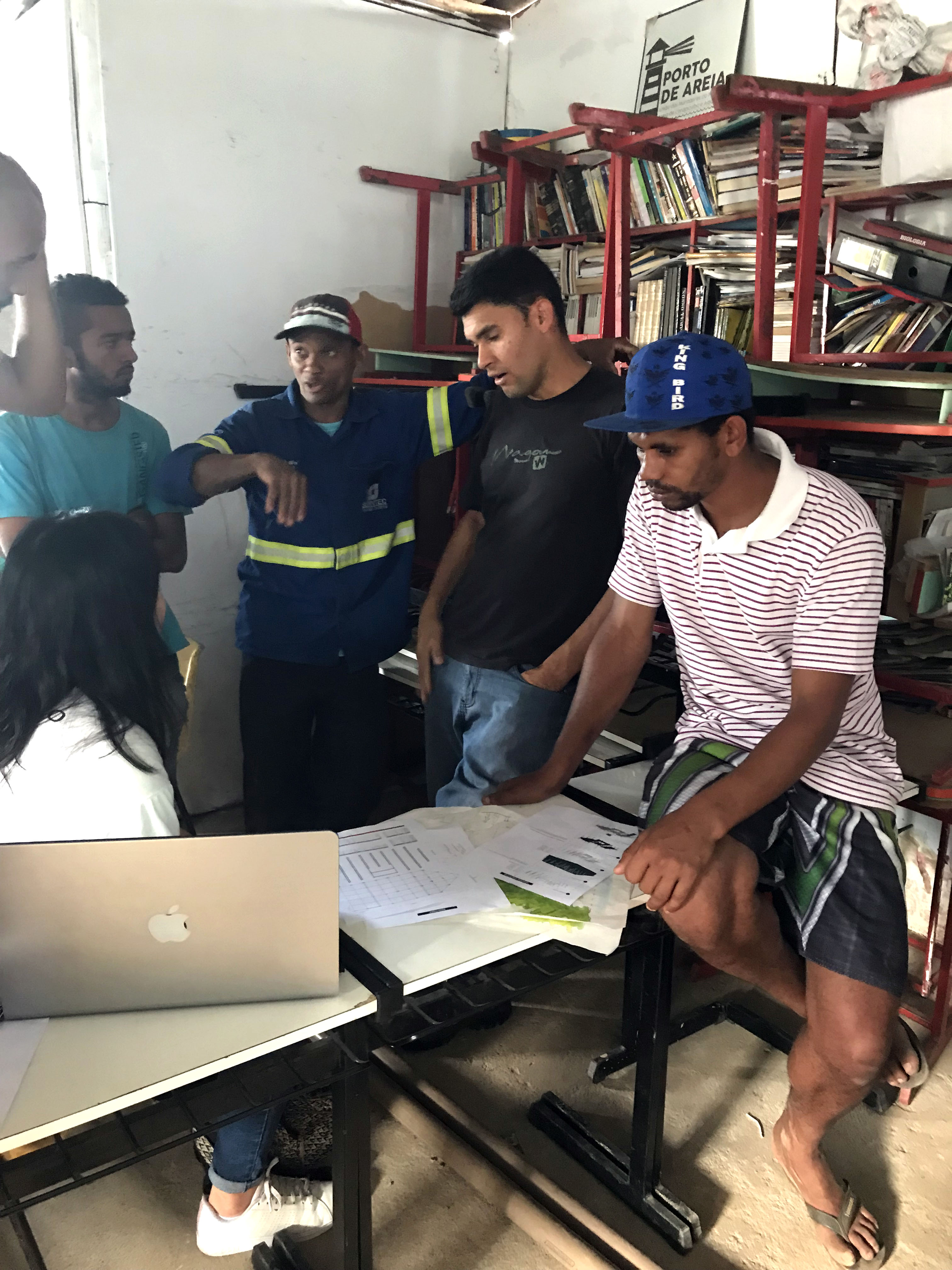 Em Abril de 2018, iniciamos o processo de conhecer e ouvir os moradores, assim como planejar o parquinho com a comunidade. Oficinas com adultos para resgatar suas memórias de infância e com as crianças, para aprender suas brincadeiras favoritas, entender as dinâmicas, o que gostam de brincar e como, onde brincam. A partir disso, algumas opções de projeto foram elaboradas e, junto com eles, definimos um único desenho. O método construtivo e decisões técnicas, foram discutidas em uma oficina com os construtores locais, visando a importância de valorizar o conhecimento construtivo da comunidade.